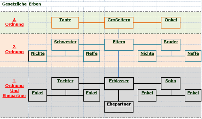 Zur dritten Ordung zählen Großeltern, Onkel, Tanten, Cousins u. Cousinen. Nicht zu den Verwandten zählen Ehepartner, Schwiegereltern, die Schwägerin sowie der Schwager.